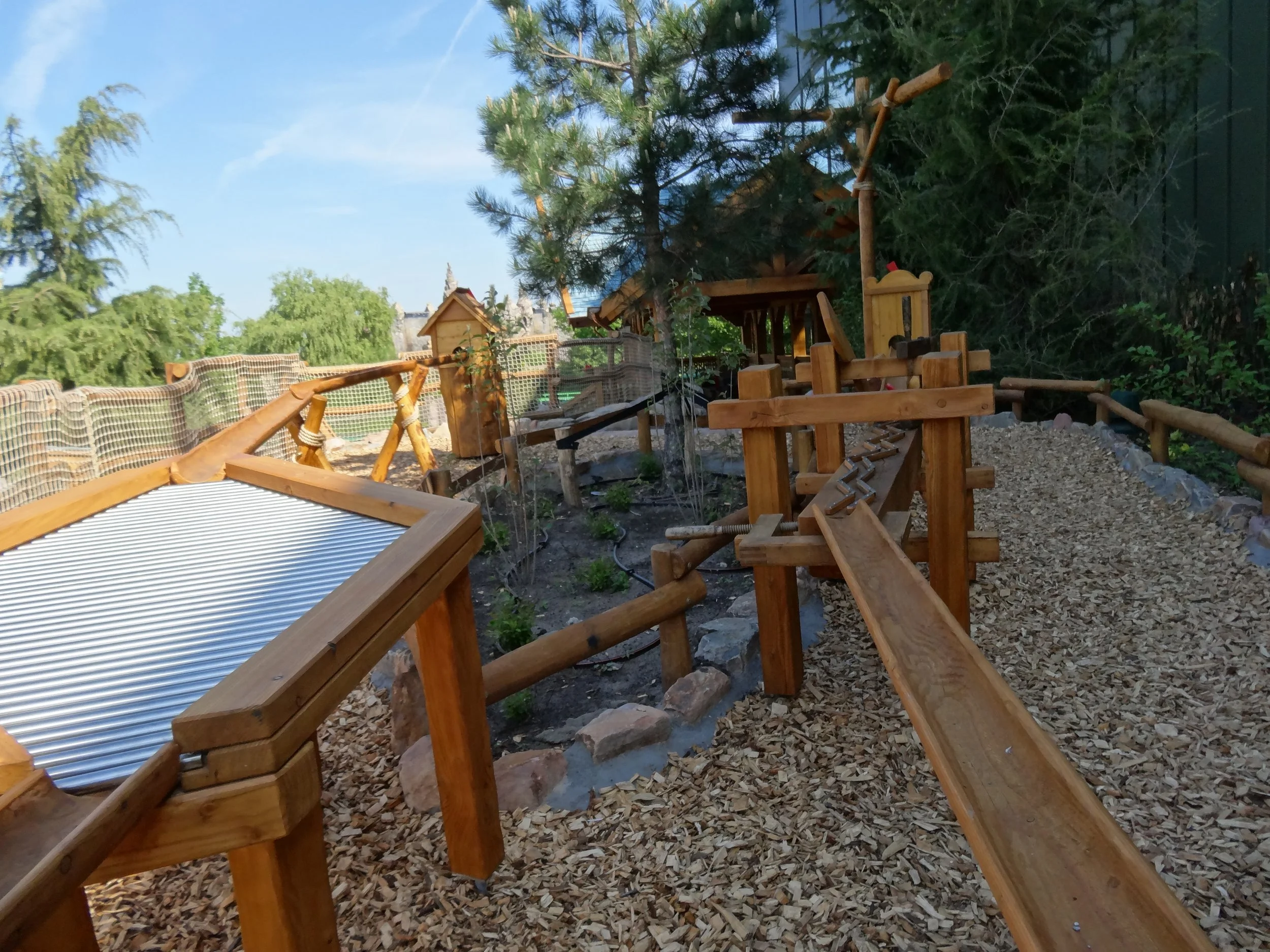 Ga de trappen op en ontdek het romatische, houten chalet. Dit is hét startpunt van de twee ballenbanen.